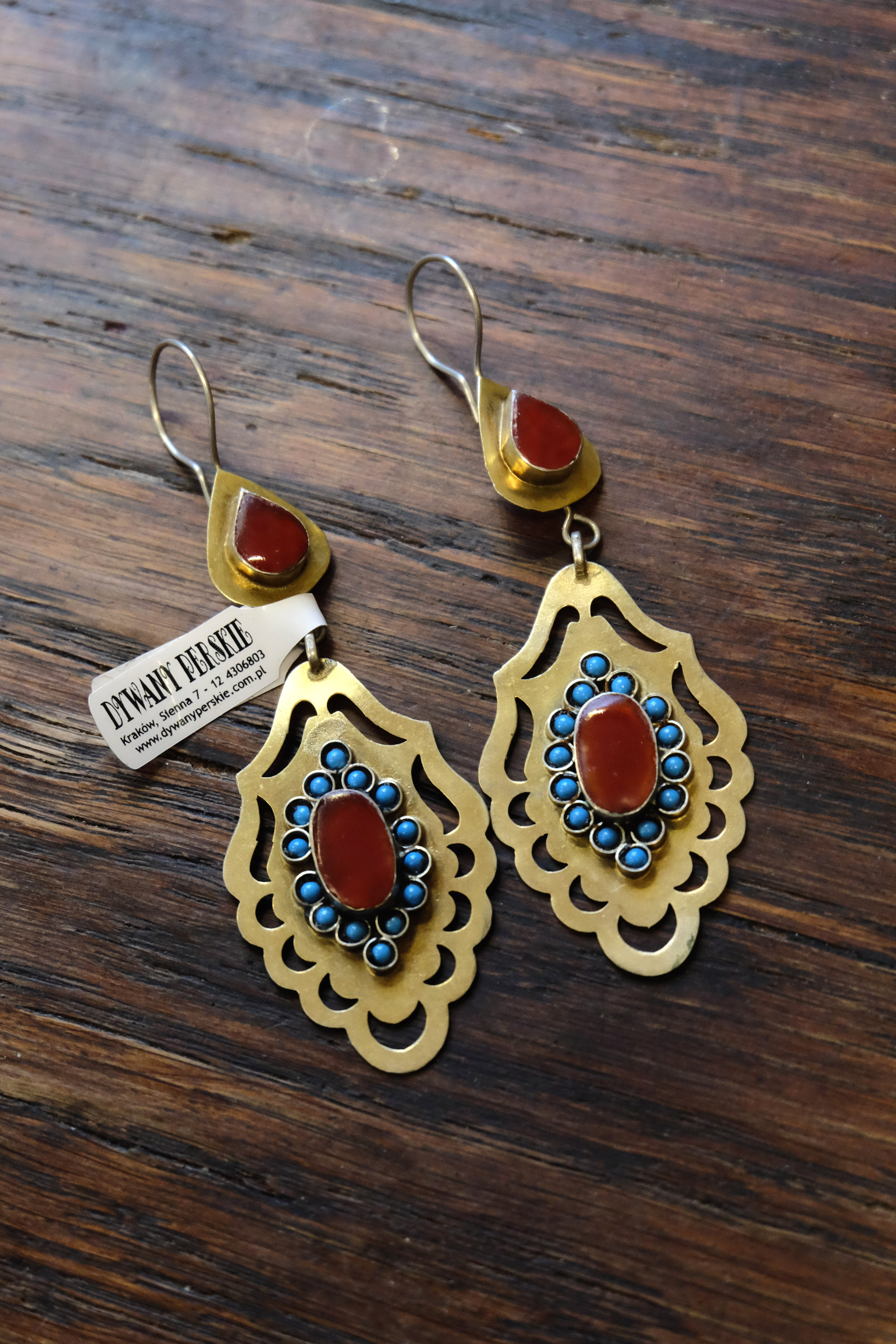 Materiał: srebro złocone, karneol+turkus