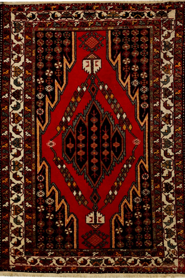 Kompozycja medalionowa pojawia się wśród geometrycznych wzorów w polu głównym. Najczęściej są to formy kwiatowe jak w niniejszym kobiercu. Bordiurę mogą zdobić motywy zaczerpnięte z kobierców afszarskich, kaukaskich lub hamadańskich. Tutaj mamy finezyjne afszarskie rozety przywodzące na myśl drzewa.